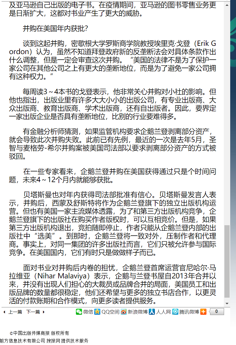 企鹅兰登与西蒙及舒斯特并购案年内能否拿到美国通行证?