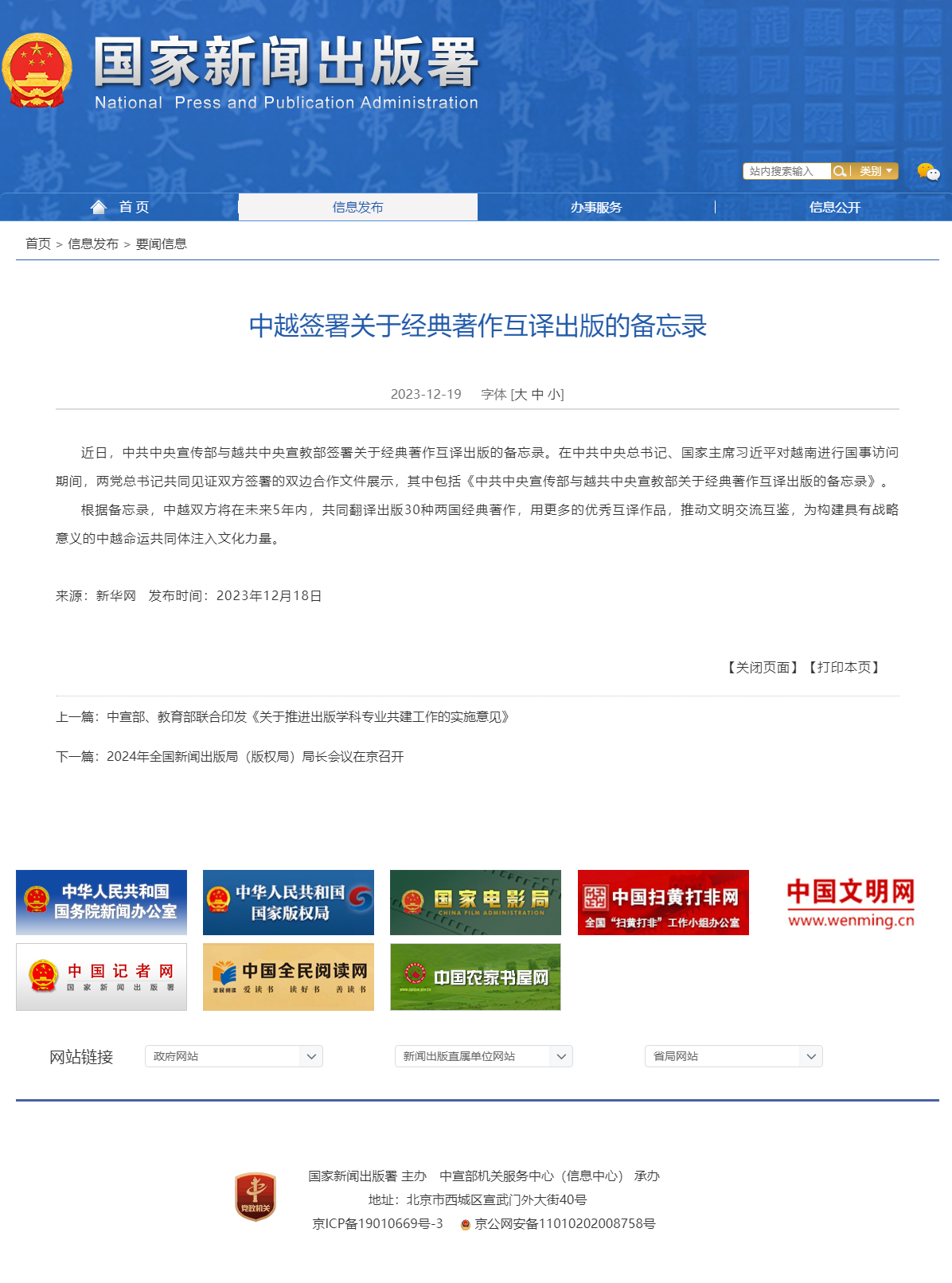 中越签署关于经典著作互译出版的备忘录